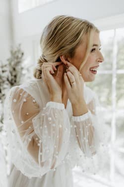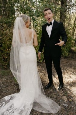 Guests were also treated to a paint-by-numbers canvas, providing a fun and interactive way to commemorate the day. The reception was illuminated by a ceiling full of disco balls, creating a whimsical and festive ambiance. Abi captured every beautiful detail, from the bride’s chic reception jacket to the intricate decor that adorned the venue. “Everywhere you turned, it was just so gorgeous,” she said.