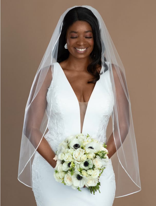 Bethany listened to my concerns and showed me that I still could have a beautiful veil that would complete my bridal look but that also would not be an annoyance to me! I gave her free reign to make whatever she thought would best suit my gown and hair style, and she executed my veil beautifully. It wasn’t in my way, didn’t weigh my hair down, looked absolutely gorgeous in photos, and bonus – my mother-in-law got her wish to have me wear one! Win-win for everyone!